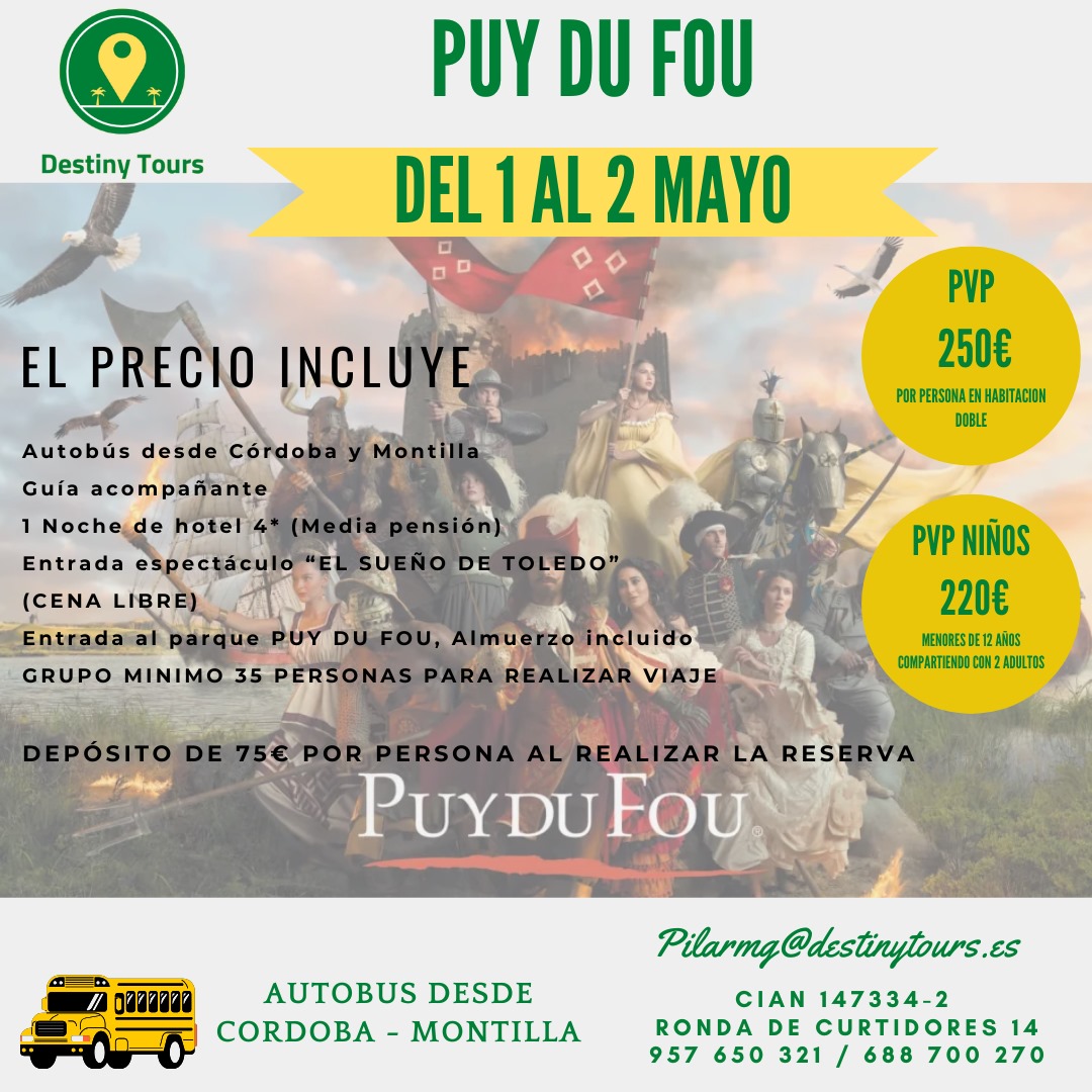 Nuestros Viajes programados temporada 2025/26 de un día, con autobús desde Montilla.